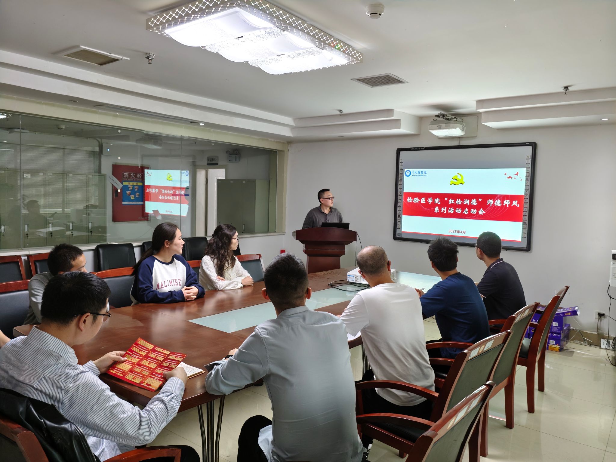 为深入贯彻落实党中央、国务院关于加强新时代教师队伍和医疗卫生人才队伍建设的决策部署,全面加强师德师风、医德医风建设,打造一支政治坚定、业务精湛、作风优良的高素质检验队伍,近日,检验医学院与附属医院检验科同步启动 “红检润德” 师德师风、医德医风专题学习活动,通过强化思想引领,为检验人才培养与医疗服务质量提升注入“红色引擎”。