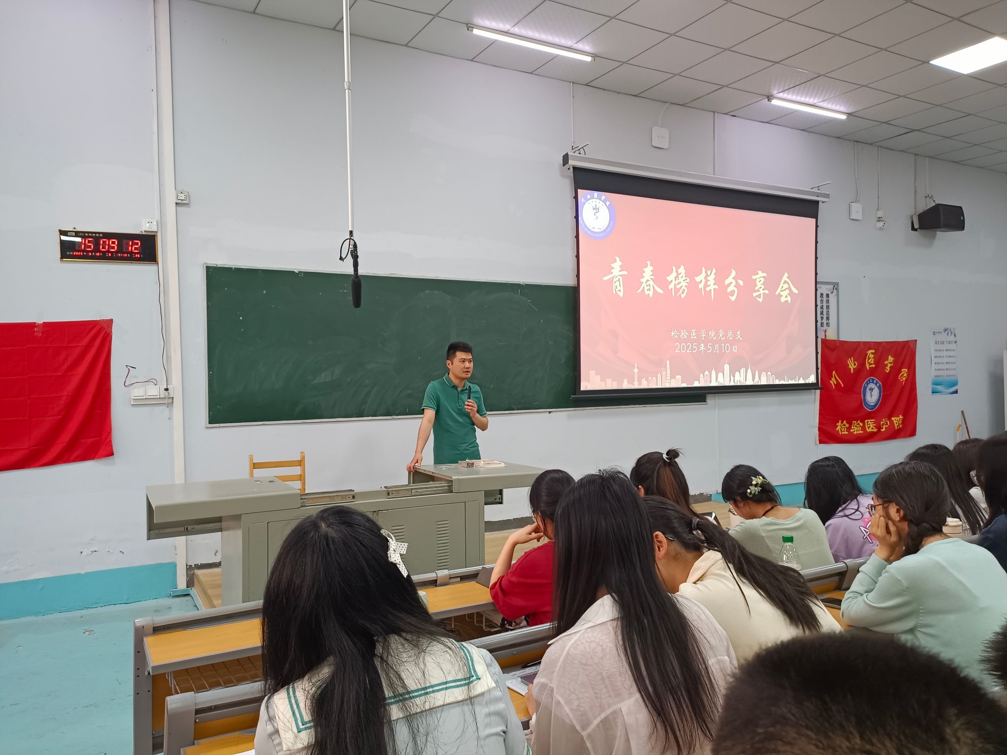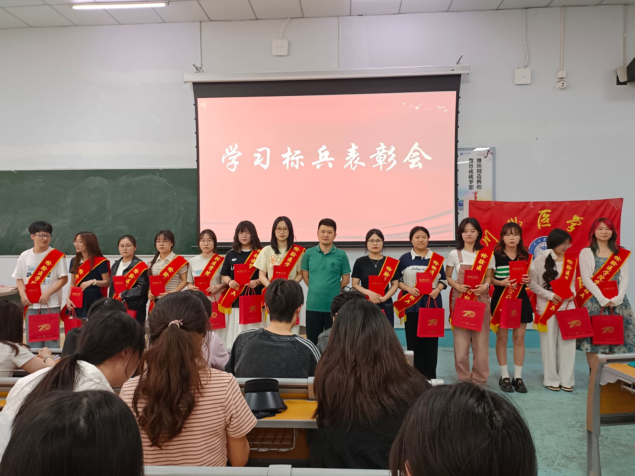 为表彰优秀学子,激励全体同学以榜样为镜,同时帮助学生更好地了解考研形势,规划未来发展方向。近日,检验医学院于顺庆校区第十四教室举办“红检之星”学习标兵表彰会暨青春榜样分享会。检验医学院党总支副书记郭斌,学生科科长任云,2021级考研成功优秀学生与检验医学院2022级全体同学,2023、2024级部分同学参与此次活动。
