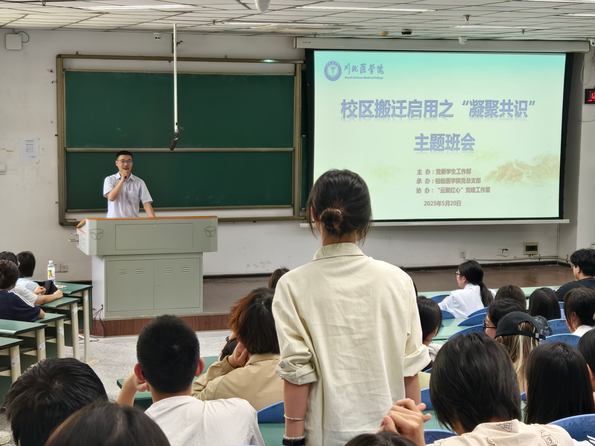 为让同学们充分认识校区搬迁的重要意义,凝聚发展共识,增强对学校的归属感和自豪感,积极投身校区搬迁工作。5月20日,由学生工作部主办,检验医学院承办,“云聚红心”党建工作室协办的校区搬迁启用之“凝聚共识”主题班会于图信楼207教室开展,此次班会由校区置换与建设工作推进办公室工程科科长韩长运担任主讲,检验医学院2023级、2024级200余名学生参加。
