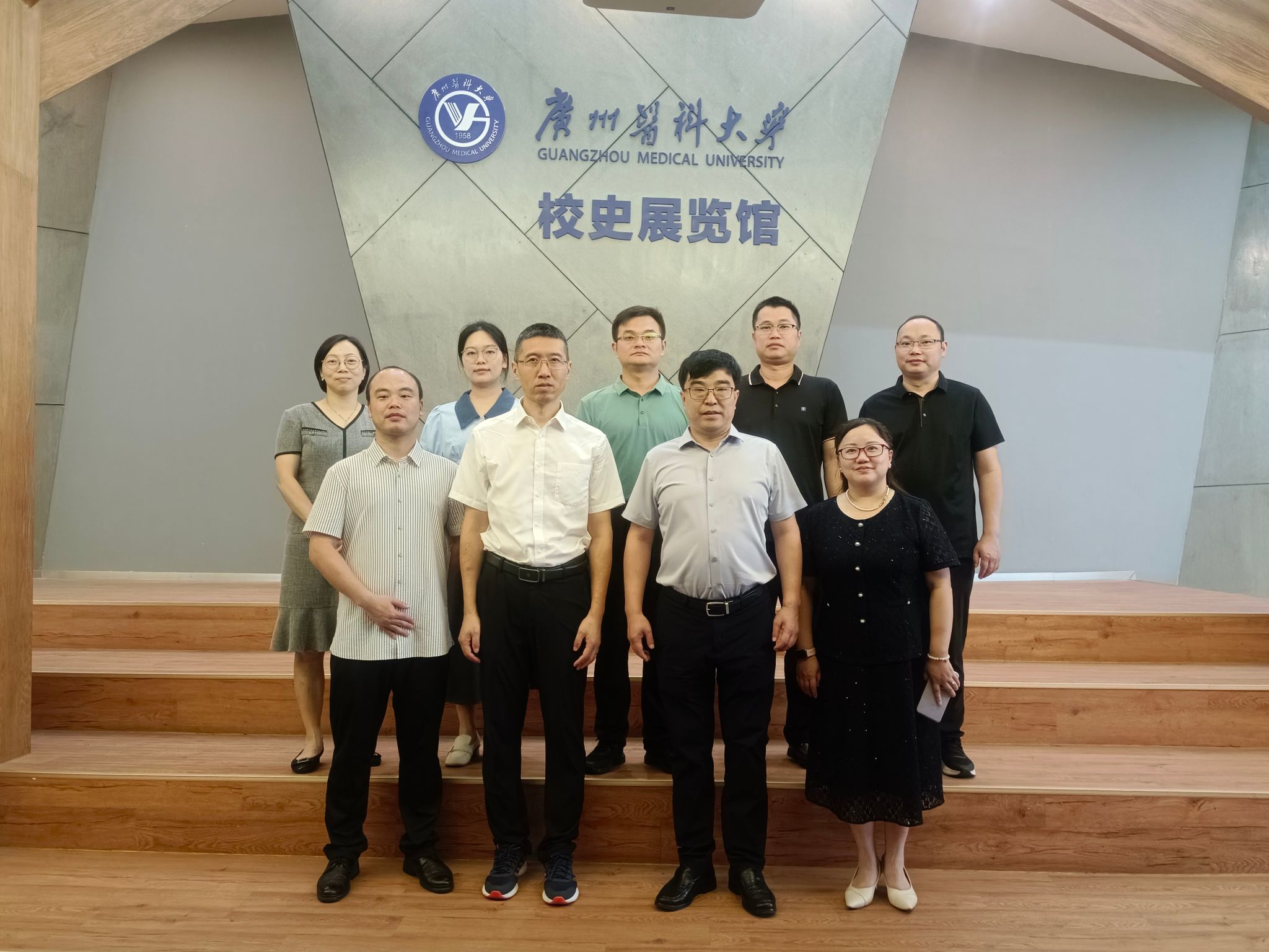 随后,吴宾一行实地参观了广州医科大学校史馆和科技成果展厅。此次交流活动聚焦产业学院建设、校企合作、教学与科研成果转化等多个关键领域,我校将以此次交流学习为契机,充分借鉴广州医科大学的先进经验,拓宽发展思路,为全面落实学校“1510高质量发展战略” 注入新动力,积极探索适合本校发展的产业学院建设之路,助力高水平医科大学建设。