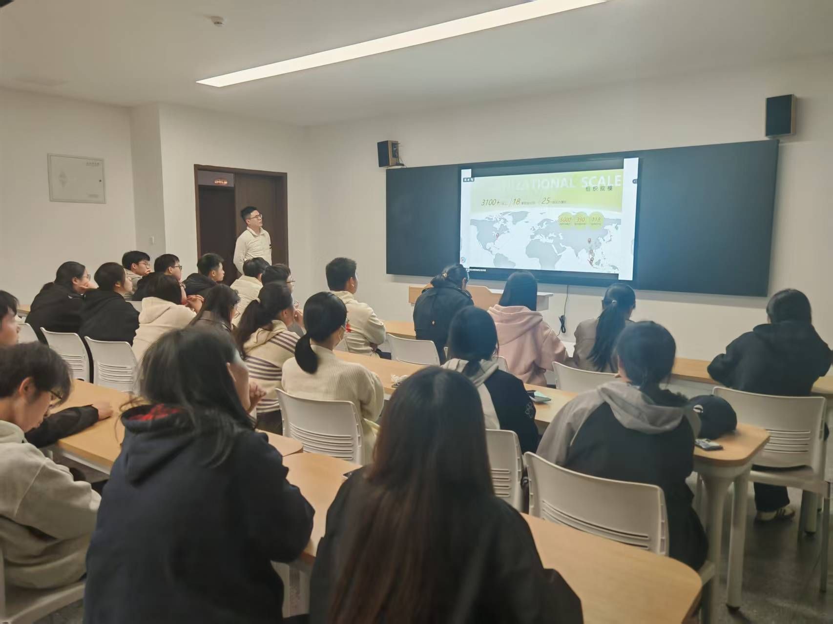 招聘会开场,郭斌首先对迈克一直以来对学院学生培养、实习就业等方面的支持表示感谢,强调毕业年级应充分认识到当前求职应聘竞争激烈,希望同学们能够主动了解就业现状,结合自身特点,抓住求职“黄金期”。其他年级的同学应尽早做好生涯发展规划,学院也会为大家创造更多机会对接优质岗位,帮助大家顺利就业。随后,陈晓莉详细介绍了体外诊断(IVD)技术、迈克公司的基本情况与发展规划、IVD 产品的生命周期以及检验类专业在迈克公司的适配岗位,最后对同学们对岗位等方面的疑问进行了一一解答。