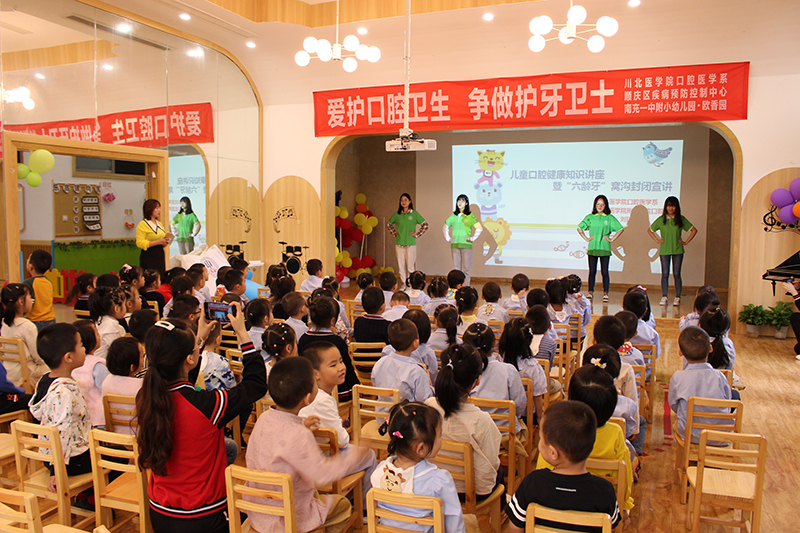 9月18日上午,我系又在南充市南充一中附小幼儿园开展了“我是无龋好儿童!”活动,我系的专家和志愿者为小朋友讲解爱牙护齿相关知识,并给小朋友们进行了涂氟。旨在通过涂氟这一保健措施,降低幼儿患龋风险,提高儿童口腔健康水平。