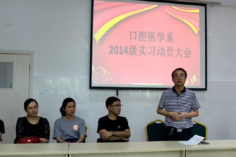 为更好地开展2014级同学实习工作,增强实习同学的自我管理意识与安全意识,口腔医学系于6月6日下午在口腔医学系会议室举办了2014级实习学生动员大会。本次动员会由口腔医学系团总支书记陈凤主持,口腔医学系党总支书记梅小平主讲。此外,口腔医学系副主任刘英教授、颌面外科教研室主任青松等也发表了讲话,2014级全体实习同学参加了动员大会。