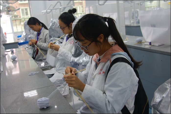 本次比赛设打绷带、打毛线、牙模素描、心肺复苏四个项目。在学生会工作人员的安排下,现场秩序井然。经过前期的专业培训,同学们在比赛中都展示出娴熟的操作技巧。比赛的亮点,莫过于参加打毛线的男同学,他们专注地起针、平针、收针,精细的手法丝毫不逊色于心灵手巧的女同学。此次比赛相比以往增设了心肺复苏项目,目的是为增强口腔医学生的临床技能。赛后,评委们的悉心点评和耐心指导让同学们受益匪浅。