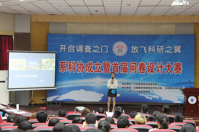 10月24日下午3点,口腔医学系科协成立大会暨首届问卷设计大赛决赛于川北医学院高坪校区图文信息大楼407教室成功举行。思政部张红霞、陈林老师,口腔医学系朱万春、陈凤老师以及检验系科协负责人邓焱曦、院科协副会长董吉祥同学担任本次大赛评委。