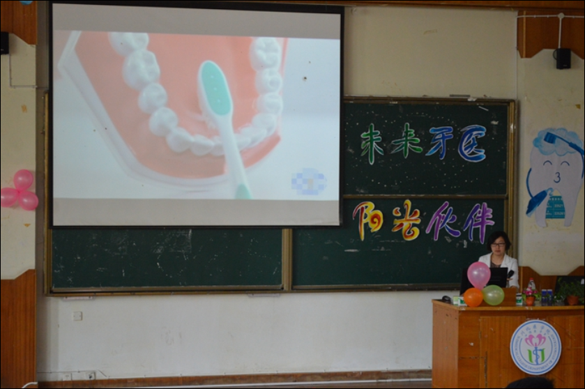 主讲教师们针对不同年级学生的专业知识掌握水平,开展了“口腔医学的昨天、今天和明天”、“自我口腔保健”、“牙本质过敏症的病因及治疗”、“牙周疾病的介绍”、“牙医人生”等五个主题的口腔知识讲座,讲座内容丰富,实用性强。讲座结尾,高露洁棕榄(中国)有限公司叶蓉女士为部分同学讲解了防龋氟料——多乐氟的使用方法,同学们受益匪浅。