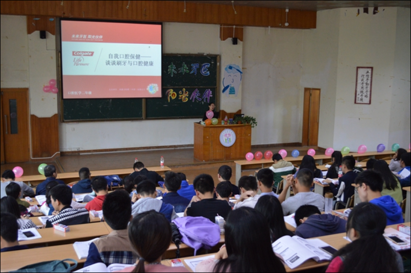 4月17日上午,口腔医学系与高露洁棕榄(中国)有限公司合作的“未来牙医,阳光伙伴”系列知识讲座活动在我校顺庆校区和高坪校区同时举行。口腔医学系主任米方林、高露洁棕榄(中国)有限公司代表叶蓉女士、口腔医学系部分教师等参加讲座,口腔医学系全体学生聆听了此次讲座。