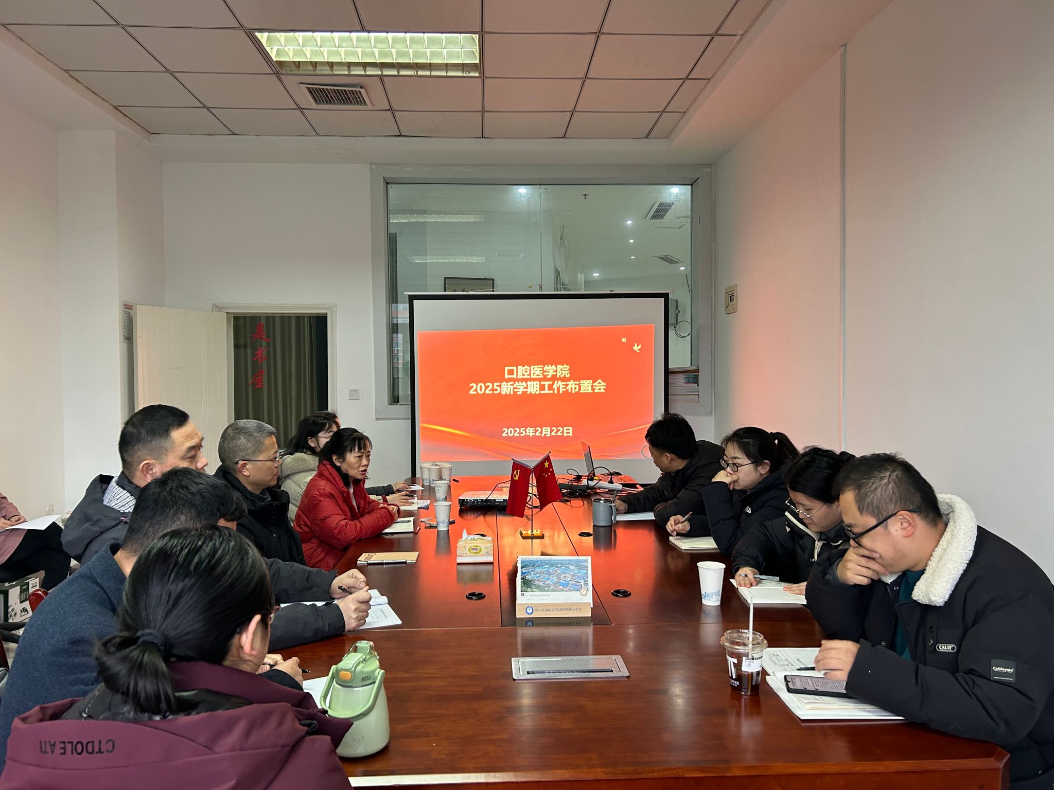 为科学谋划新学期重点工作,推动学院高质量发展,2月22日下午,口腔医学院在会议室召开2025新学期工作布置会。学院领导班子成员、各教研室主任和秘书、专职科研人员、实验室主任和教师以及行政管理人员参加会议。会议由口腔医学院院长刘英主持。