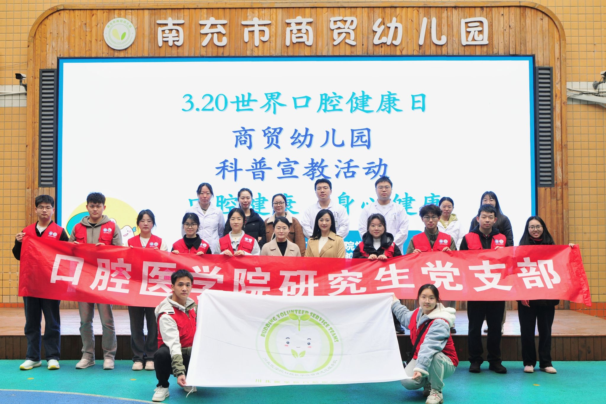为降低儿童龋齿患病率,增强学龄前儿童口腔健康意识,在3·20世界口腔健康日来临之际,口腔医学院于3月17日走进商贸幼儿园,开展科普基地授牌暨宣教涂氟活动,口腔医学院院长刘英教授,学生科周琪老师、蒋怡老师出席,研究生、本科生志愿者参与。