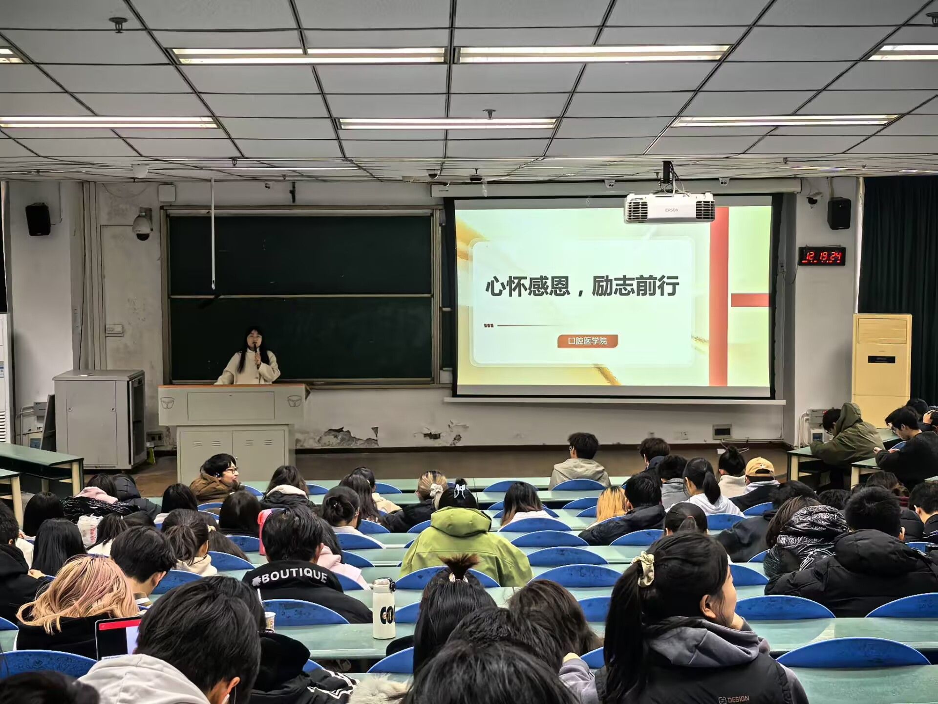 3月28日,口腔医学院于高坪校区图信楼302教室开展感恩励志教育主题形教课。学生科辅导员蒋怡老师主讲。