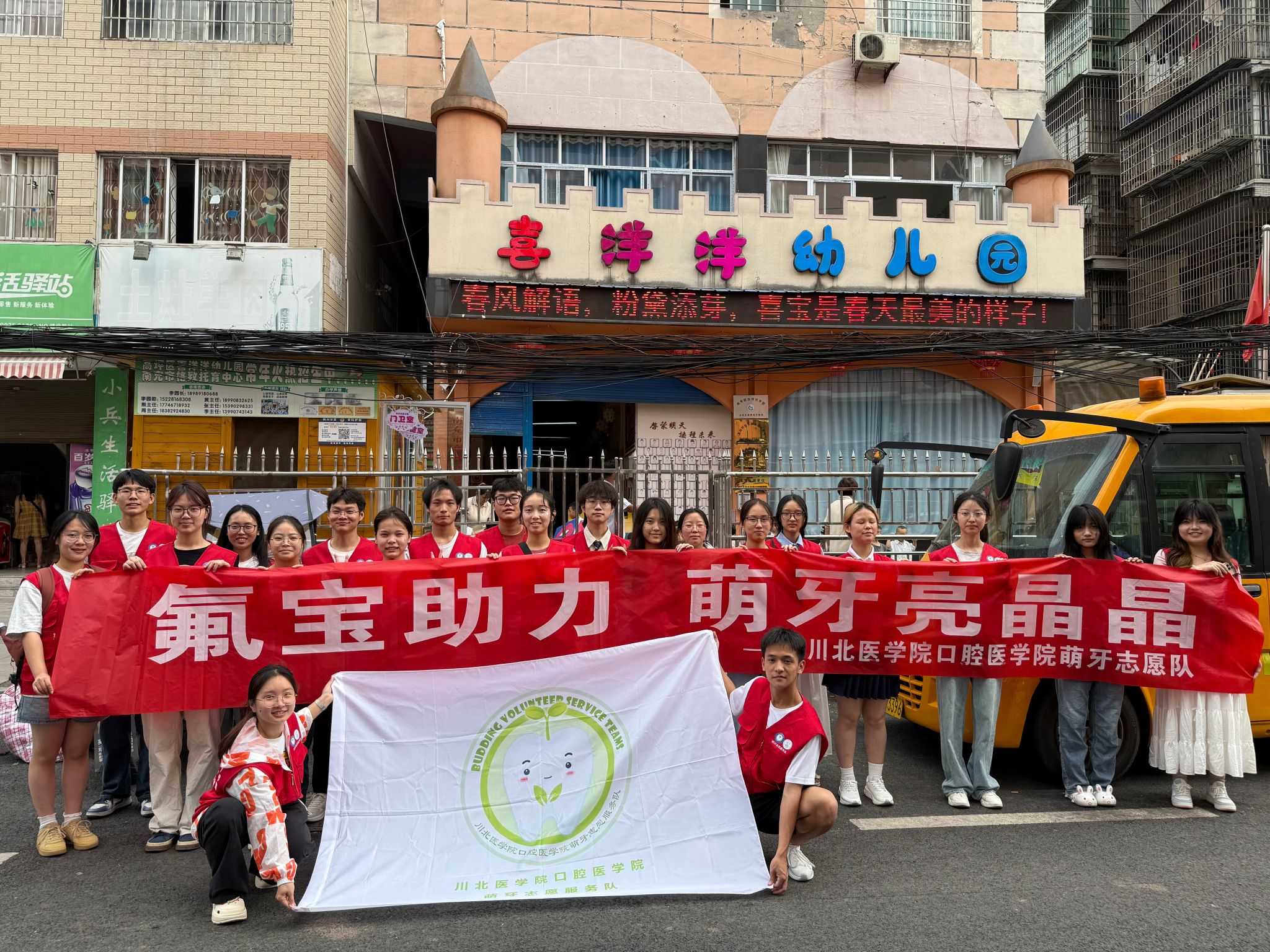 为贯彻落实国家卫生健康委《健康口腔行动方案》,提升学龄前儿童龋病防治能力,5月14日,口腔医学院走进喜洋洋幼儿园,开展“氟宝助力,萌牙亮晶晶”主题宣教活动。本次活动通过寓教于乐的科普形式,帮助幼儿树立科学护齿意识,助力实现“健康中国2030”儿童口腔健康目标。