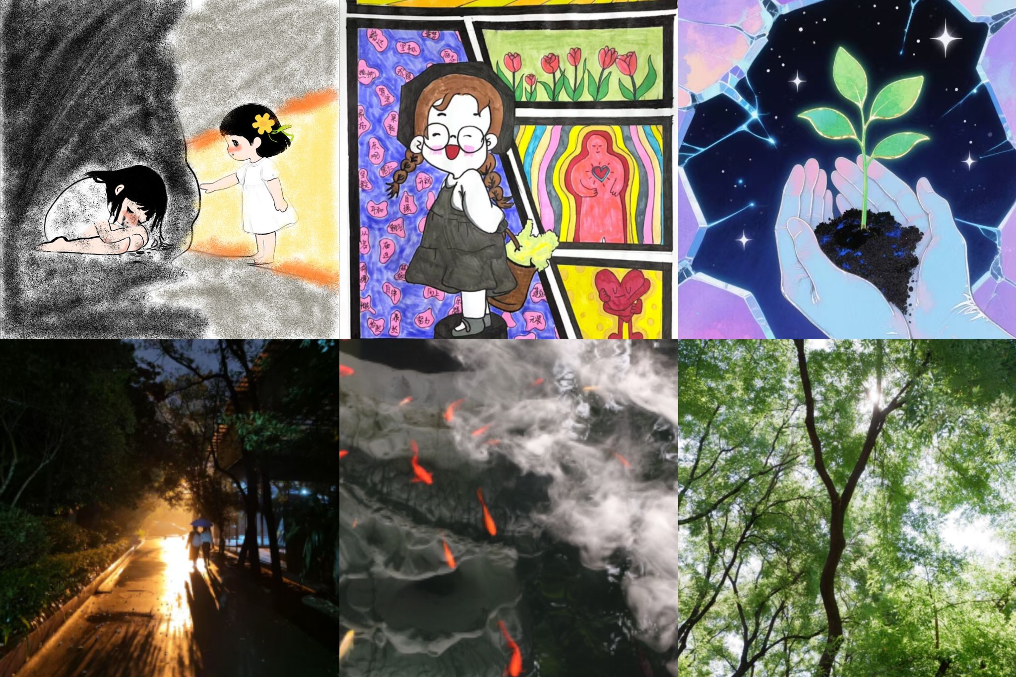 同期举办的“心灵光影绘彩赛”创新采用"绘画+摄影"模式,鼓励学生用艺术语言诉说心路历程。活动征集到70余件创意作品。有的用绚丽的色彩描绘出内心对美好生活的向往,有的通过抽象的线条展现出面对压力时的迷茫与挣扎,还有的以温暖的画面表达出对友情、亲情的珍视,展现了艺术疗愈心灵的独特魅力,实现"以美育心、以艺润心"的教育目标。