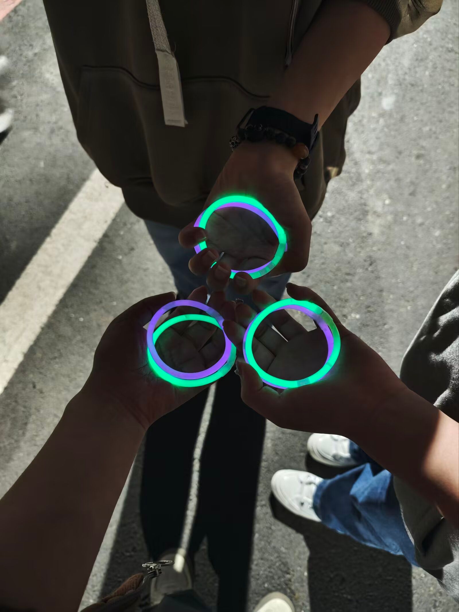 活动前,工作人员详细讲解规则与安全须知,通过高德地图群组为同学们随机分配“猫”“鼠”身份并发放荧光手环。随着裁判的指令枪落下,“鼠”队同学们瞬间活力迸发,迅速散开奔向校园各处。他们或巧妙利用教学楼走廊拐角隐藏身形,或借助茂密枝叶规避视线,亦或在运动场间灵活穿梭,争分夺秒地为自己争取安全时间。随着倒计时结束,“猫”队正式开启“狩猎”模式,一场集速度、智慧与协作于一体的紧张追逐战即刻点燃校园,欢声笑语在校园里不时响起。