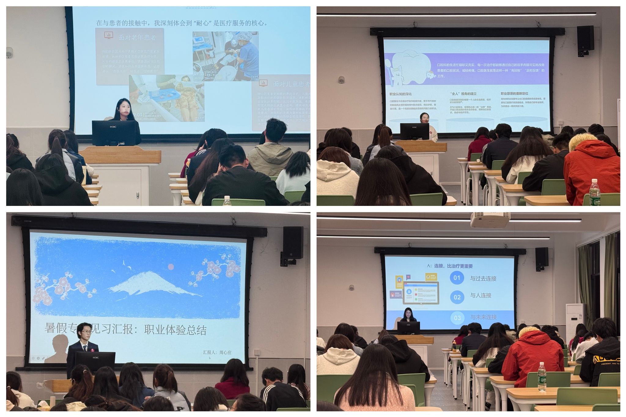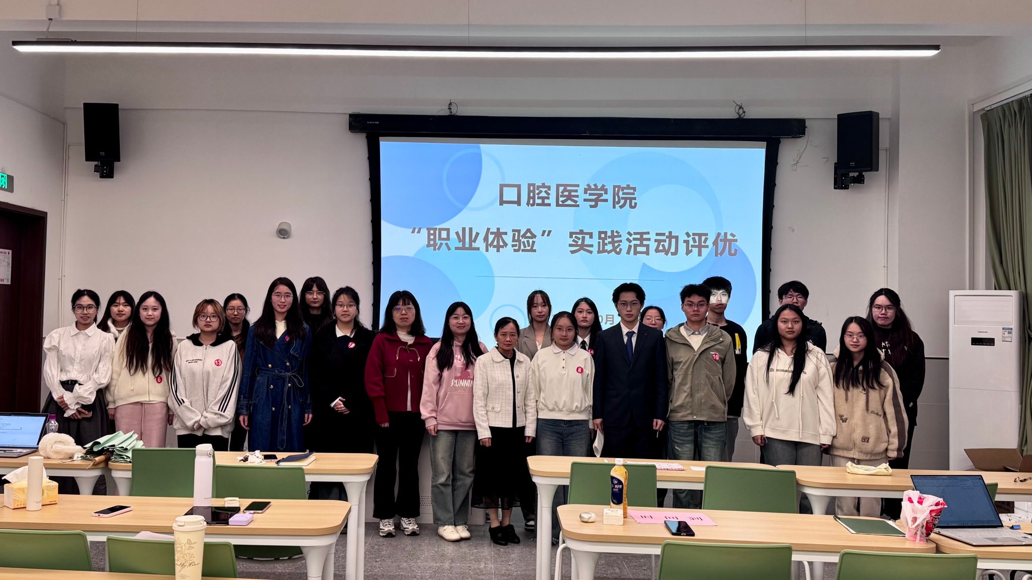 为培养口腔学子的社会责任感和专业认同感,做好学业规划和生涯规划,10月24日,口腔医学院2025年暑期“职业体验”评优活动在临江书院二号楼北403顺利举行。口腔医学院院长刘英、辅导员蒋怡、梁冰出席活动,全院学生积极参与,共同聆听16位参赛选手的职业感悟,见证口腔医学新生代的专业成长与思考。