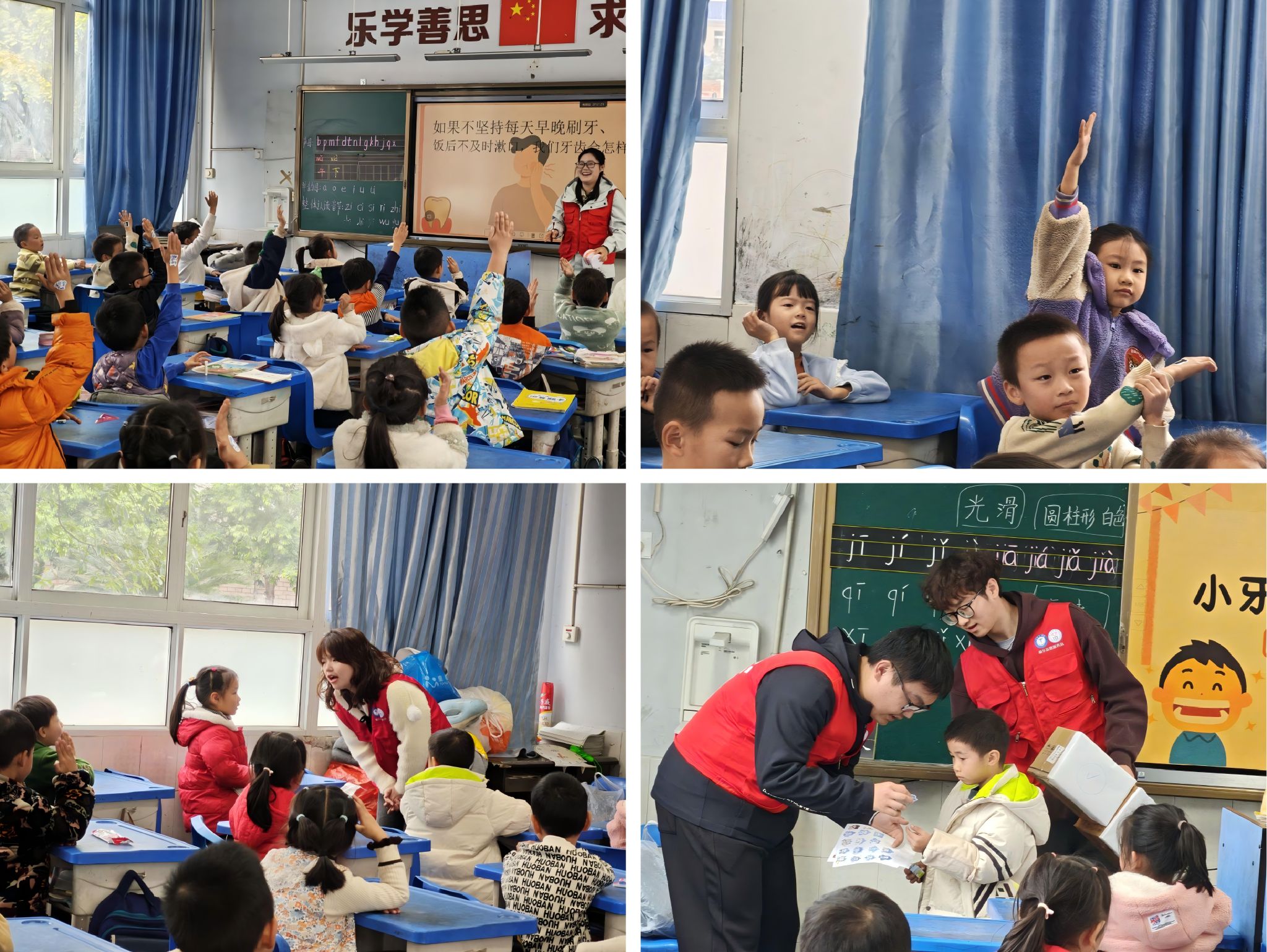 活动现场,志愿者借助生动有趣的PPT和卡通视频,以通俗易懂的语言为孩子们讲解换牙期的生理变化,并现场演示正确的刷牙方法。在轻松愉快的氛围中,知识问答环节拉开序幕,小朋友们踊跃举手、积极参与,口腔健康知识在互动中悄然深入人心。