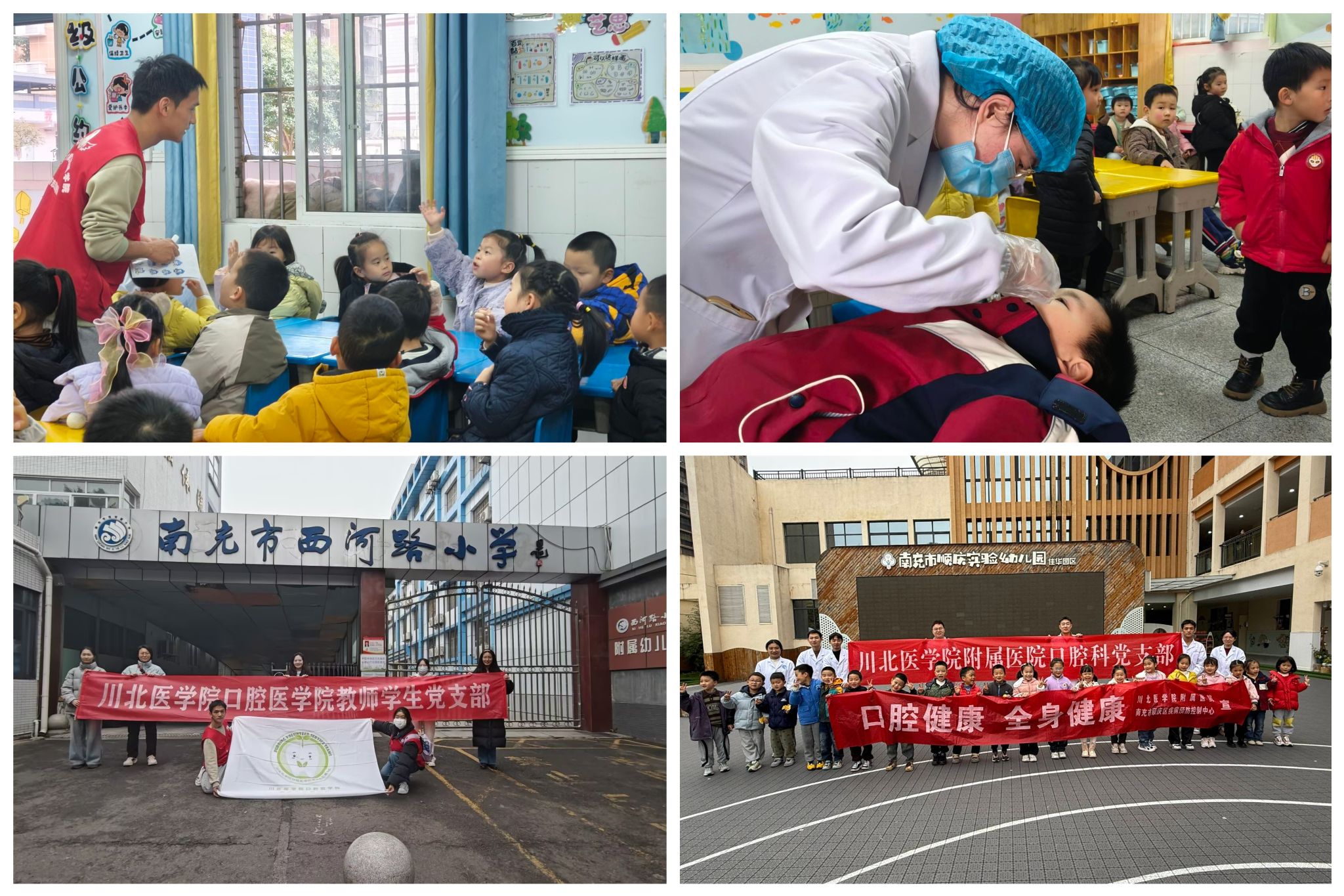 为响应“健康中国”战略,普及儿童口腔健康知识,口腔医学院教师学生党支部联合附属医院口腔科党支部、萌牙志愿服务队,于12月4日、5日分别前往顺庆区西河路幼儿园和佳华路实验幼儿园开展“关爱牙齿从小始,健康快乐伴终生”口腔健康志愿服务系列活动,以专业力量助力儿童口腔健康。
