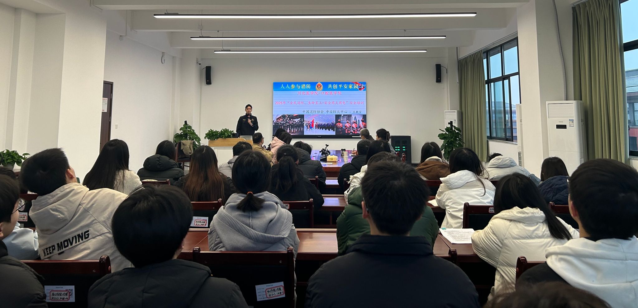 为进一步提升师生消防安全意识与应急自救能力,口腔医学院于12月12日举办“全民消防、生命至上—安全用火用电”专题培训。本次培训邀请中国消防协会、南充市中安防火知识宣传中心教官王教官担任主讲,学院师生代表参加。