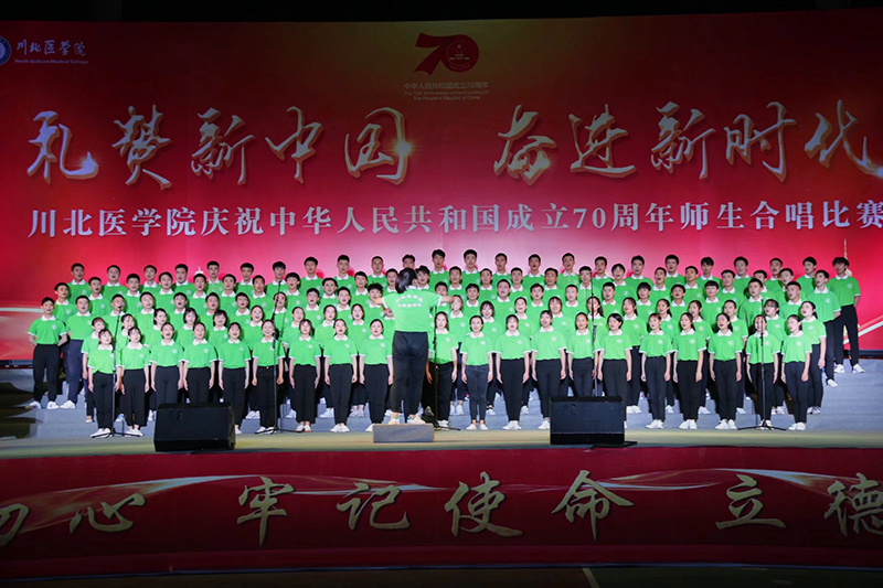 为庆祝中华人民共和国成立七十周年,彰显川北医学子自强不息,艰苦奋斗的时代精神,川北医学院于9月29日晚在高坪校区举行“礼赞新中国,奋进新时代”师生合唱比赛,口腔医学系合唱团由口腔医学系党总支书记梅小平,口腔医学系主任米方林、副主任刘英,以及12位教师代表和102位学生代表共同组成。