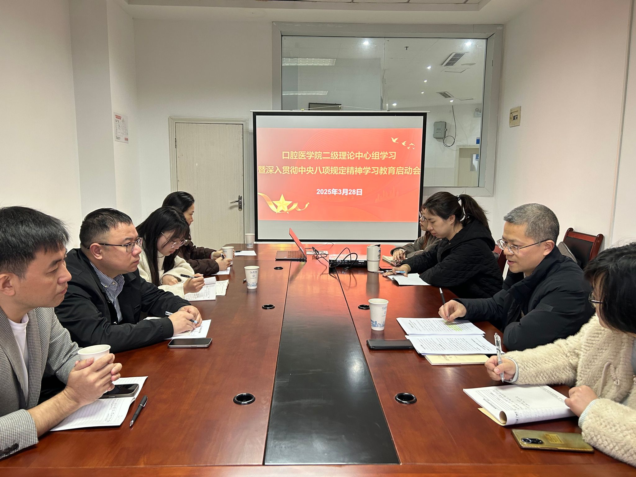 3月28日,口腔医学院党总支召开深入贯彻中央八项规定精神学习教育启动会,口腔医学院党总支书记朱清云主持会议,对扎实抓好学习教育作具体安排部署。