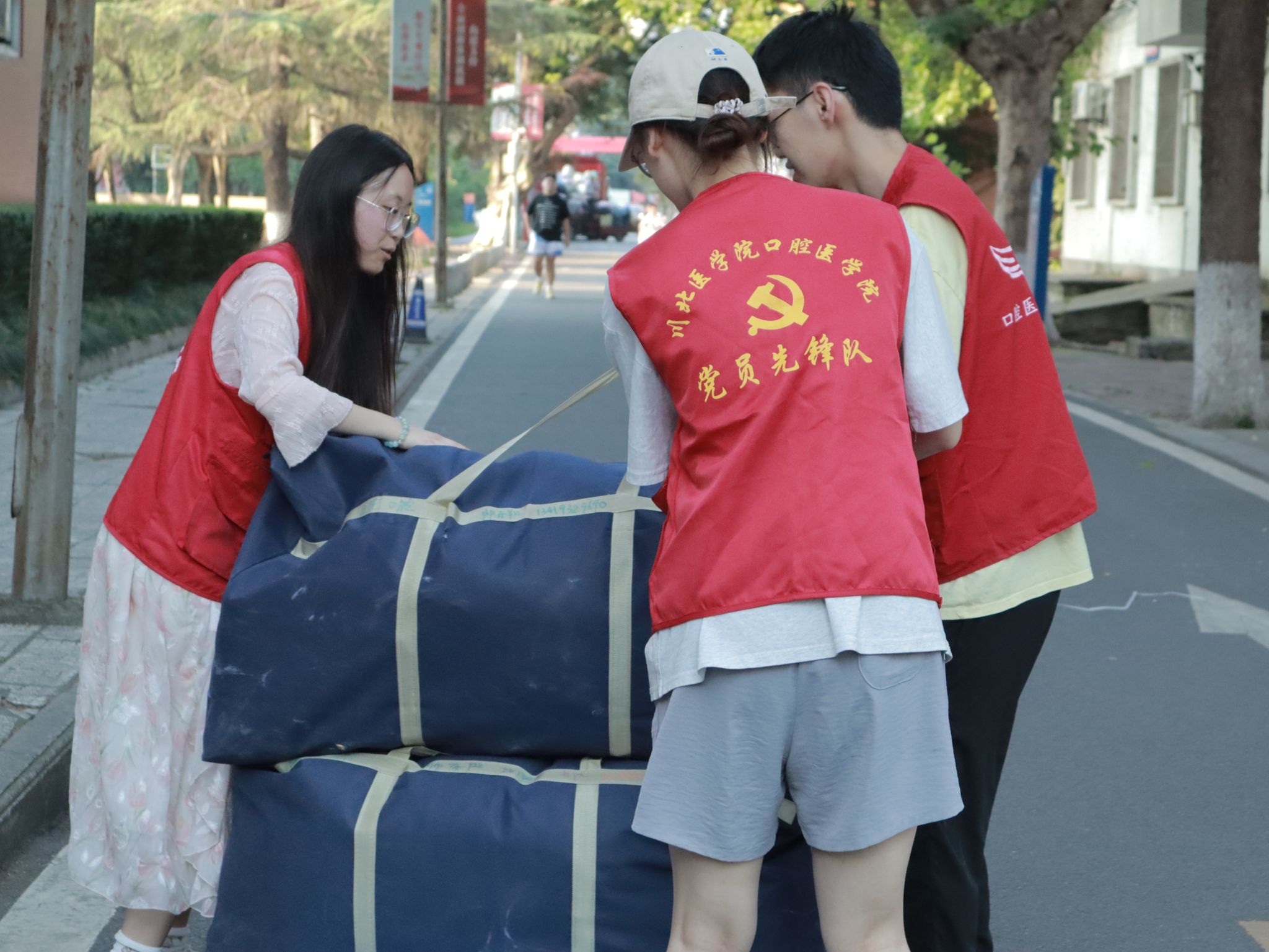 六月的校园,实习的钟声已然敲响。为弘扬志愿服务精神,充分发挥党支部的战斗堡垒作用和党员先锋模范作用,口腔医学院教师学生党支部于6月10日至11日在顺庆校区组织开展了“党员先锋服务实习启程”主题党日活动。支部党员、积极分子及众多志愿者积极响应,齐心协力,为即将奔赴实习岗位的实习生搬运行李,以实际行动践行宗旨使命。