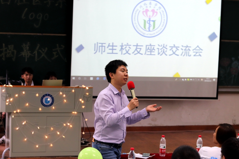 会议伊始,口腔医学系04级的校友代表依次发言,分享自己的心路历程、经验教训以及对我系学子的忠告劝诫。分享内容丰富,面面俱到,真挚恳切,涵盖了工作、考研、见习、实习等多个方面,强调了稳固的理论基础与熟练的操作技能的重要性,更叮嘱在校同学要保持学习热忱,树立终身学习的人生观。并与同学们进行了深入交流,用肺腑之言与真情实意搭起了一届届口腔系学子间沟通交流的桥梁,解答了同学们在学习与生活上的疑问,同时总结经验教训,针对问题发表独到的见解。其中杰出校友代表吴智斌指出要在学习和生活二者间进行权衡,更要在人生的抉择中有勇气、有胆识,选择适合自己的道路并坚定不移地走下去。校友为口腔系学子指明未来方向的同时也从校友角度为学校人才培养搭建绿色通道,集心集智,贡献力量。