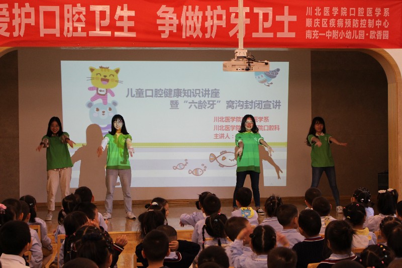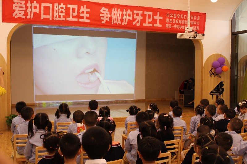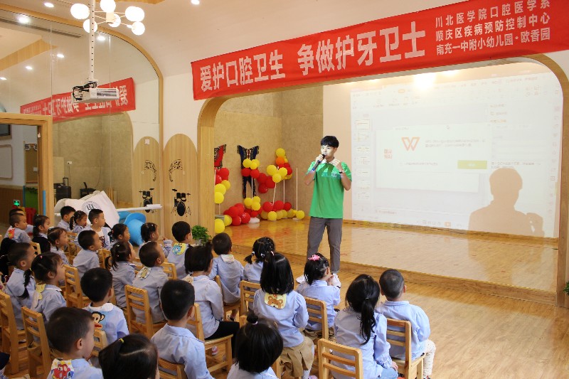 为广泛传播口腔健康知识,着重培养幼儿口腔健康意识,动员群众关注儿童口腔情况。9月18日8:30,由川北医学院口腔医学系、南充市顺庆区疾病预防控制中心主办,川北医学院口腔医学系萌牙志愿服务队承办,以“口腔健康,全身健康”为主题的9.20爱牙日系列活动——幼儿园涂氟活动在南充市南充一中附小幼儿园顺利开展。川北医学院口腔医学系师敏老师、南充市顺庆区疾病预防控制中心主任以及川北医学院口腔医学系的志愿者们参加了此次活动。