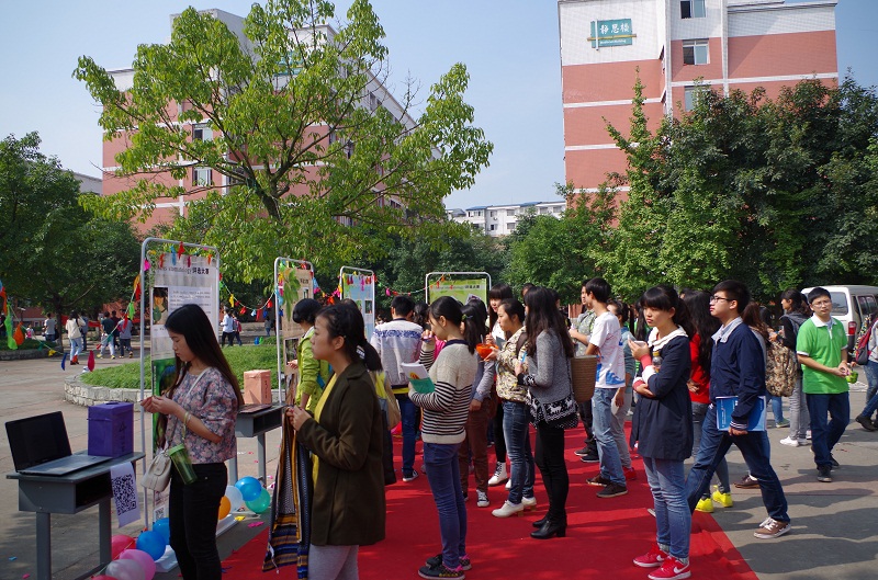 此次活动参与度广泛,获得了系内外乃至校内外同学的大力支持。活动当日阳光明媚,身着统一绿色系服的工作人员现场卖力宣传,向来往同学介绍并带领大家参与到投票环节中。活动现场摆放了6位决赛选手的唯美照展板,展板旁的电脑滚动播放每位选手的生活视频。美丽的选手和新颖的赛制吸引了众多同学前来参与,各型各款的候选佳人让观众们眼前一亮,难以抉择。大家经过仔细斟酌后,把宝贵的一票慎重投给了自己心仪的女神。投票现场还设置了扫描二维码支持喜爱选手与有奖投票抽取环节,该过程中参与同学都非常开心。