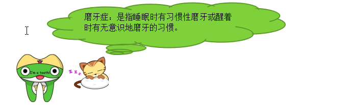 1.睡眠时患者有典型的磨牙或咬紧牙动作,或醒着时有下意识地做这些反复动作,伴有嗄嗄响声。
