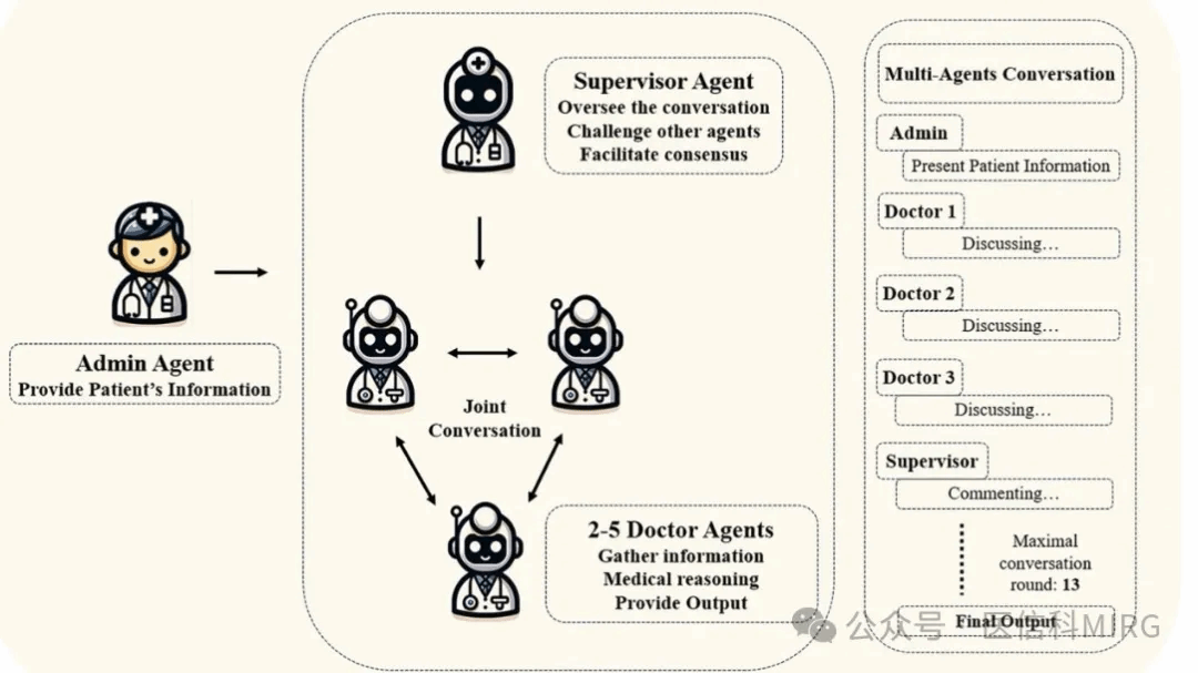 研究的起点源于大型语言模型在医疗应用中的核心矛盾:尽管拥有庞大的医学知识库,但在真实临床环境中,模型常表现出理论与实践脱节的情况。例如,在罕见病诊断中,GPT-4虽能精准描述疾病特征,却难以从零散的临床症状中得出正确结论。这种“知识充沛却应用乏力”的现象,促使研究者借鉴多学科团队(MDT)的协作模式,设计出包含医生智能体与监督智能体的对话框架。