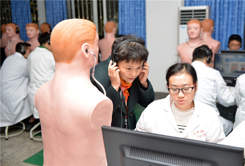 专家组考察心肺听诊实训室