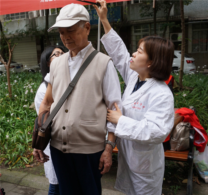 活动现场,同学们义务为该社区的居民测视力、量身高和体重、量血压,发放健康知识宣传资料,宣传春日常见疾病的预防措施及增强居民“疾病侵入无声息,预防控制遵‘五早’”意识,并对每种春季常见疾病进行了详细的解说,居民们仔细聆听,同学们也积极解答人们在健康方面遇到的一些问题。为加深居民对自身健康的关注度,还举行了健康知识有奖抢答,居民参与踊跃。社区负责人庞女士表示“很高兴川北医学院临床学子来到社区普及疾病预防知识,并用寓教于乐的方式强化大家的健康观念,希望能加强相互联系,经常来进行义诊和疾病宣讲”。