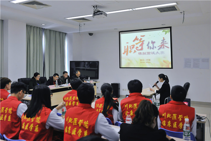 作为党性熔铸营的传统项目—“职等你来”模拟面试大赛决赛26日上午在什邡市人民医院学术报告厅举行。通过前期层层选拔,逐级筛选,8名优秀党员最终进入决赛。比赛模拟四川省公招面试形式,由什邡市人民医院副院长刘真、人事科科长周成明、医教科科长史家蓉、学校陈毅君老师担任评委。重点考察选手对“党中央治国理政新理念新思想新战略的理解与把握”、“运行新发展理念分析问题解决问题的能力”及“推动治理能力现代化的专业素养”等党员骨干成长最核心素质,旨在强化其使命责任及与之相匹配的逻辑思维、组织管理、语言表达、沟通协调以及现场应变等综合能力。比赛中选手观点鲜明、分析客观,沟通有效,充分展现了临床学生党员对形势政策的密切关注以及提升自身综合能力的阶段性成果。经过激烈角逐,选手杜俊炜获得一等奖。比赛运用新媒体进行了直播,当天观看人次达1.5万,极大地扩大了活动的受益面与参与度。