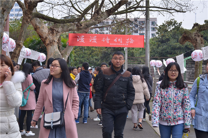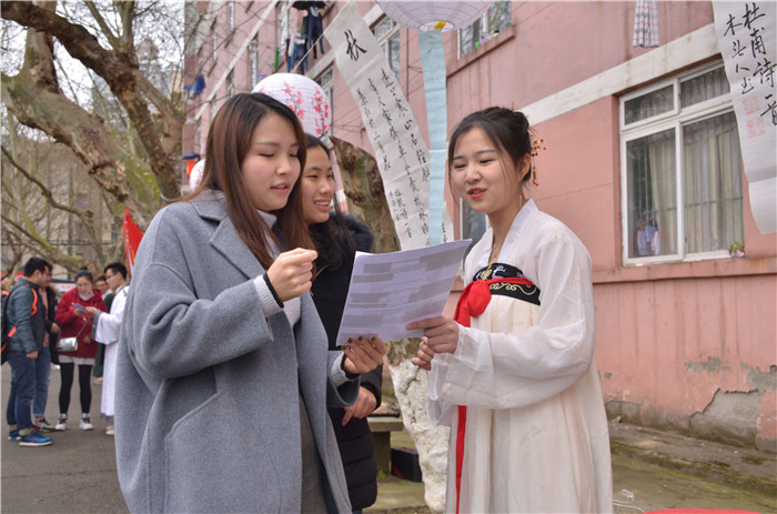 活动以诗词背诵及创作闯关为载体。当日身着汉服的诗词闯关擂主、古风古韵的灯笼、中华传统诗词书法作品及令人回味的诗词歌赋,吸引了众多学生踊跃参加。活动现场共分为“诗词连连看、连字成句、睹物思词、诗词接龙”四个闯关环节,难度层层递进,与参赛人员紧张激动的情绪融为一体,原本寒冷的天气透着浓浓暖意。古有万物之美,引无数骚客诵吟,留华词万阙。俱往矣,数迁客骚人还看今朝,学子们诗兴澎湃,才思泉涌,闯关成功后的精美礼品,更是锦上添花。