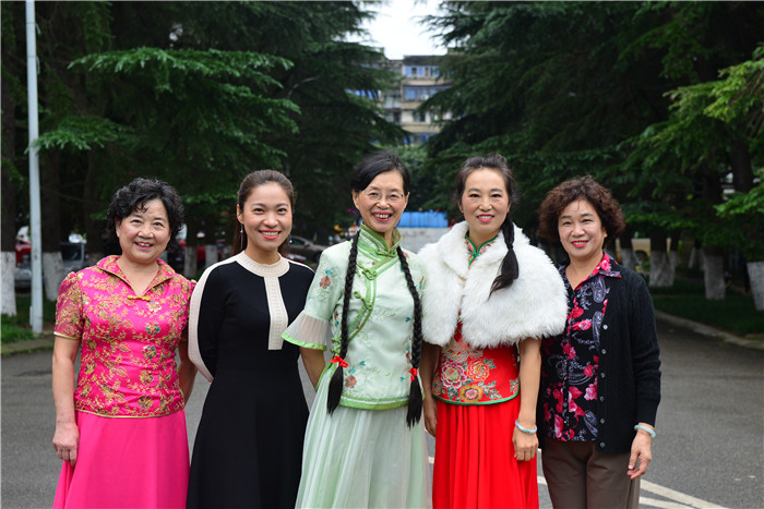 过去的岁月,离退休老教师为学校发展、壮大,默默耕耘,无私奉献,用知识,智慧,爱心点亮学生的心灵,培养了一批又一批优秀人才。今天,虽然老教师们离开了工作岗位,但仍然关心和支持学校建设与发展,他们的名字,已经深深地印在每一位学生心中。为表达积淀在学子心中长久的敬意,临床医学系党总支2014级第二党支部 33名党员志愿者精心筹划了“致敬老教师、重返二十岁”主题拍摄活动。这场特殊的拍摄活动在同学们为离退休老教师献花中拉开序幕。一束束鲜花表达深深的祝福,一张张笑脸传递着致敬。“开拍了,”服饰搭配,妆容设计,发型打造, 色彩点缀,师生间、老少间其乐融融,欢声笑语飞扬。“快看,兰教授是不是‘五四青年’,刘总啊,就是打入敌人心脏的中共地下党员,葛教授活脱脱一位大家闺秀。”在大家啧啧的惊呼中,平素稳重深沉的老教师们,仿佛重返20岁的青春岁月,或隽永帅气,或端庄大气,或婉约柔情,或朝气靓丽,一张张自信与热情的笑脸上,洋溢着生活的睿智与灿烂的青春,传递着人老不失戎马志,余热生辉耀九重的强大感染力。端详着现场打印出来的照片,77岁的葛承廉督导专家动情的说:“谢谢同学们的节日礼物,这个重阳节难忘、别致、充实。”