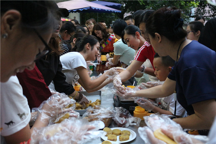 活动在舒缓温馨的歌曲《明月几时有》中拉开序幕,在少数民族同学原生态的歌舞和非物质文化遗产川剧变脸表演中,师生一起动手做月饼。和面、分剂子、称重量,一盘盘面团,一包包蛋黄、红豆、莲蓉等色彩各异的馅料,师生精心揉搓,细心包捏,耐心打压,师生间、同学间,你帮我放馅,我帮你调模具,你帮我打饼,我帮你整理,现场欢声笑语,其乐融融。在一双双灵巧的手中和DIY模具下,有着中国结、太阳花、牡丹、菊花、江崖海水等传统图案的各式月饼呈现在大家面前,师生们兴奋不已,纷纷拿出手机,记录喜庆,传递祝福。经过现场实时烘焙,鲜香四溢的月饼出炉了,在场师生欢乐地品尝自己的劳动成果,感受着其中饱含的浓浓团圆情谊。“在团圆祝福和思念的日子,第一次自己做月饼,第一次与多民族同学一起做月饼,第一次几百人一起吃着冒着热气的月饼,这份情义与感动为这个中秋节注入了更多情感内涵”班主任梅红老师动情的说。来自拉萨的2013级16班扎西尼玛第一次猜对联,第一次做月饼,他捧着自己做的月饼,表示要带回寝室与更多同学分享,并感叹学校亲情四溢的浓烈家庭氛围,表示要倍加珍惜与同学的缘分、情义,思恩溯源,感恩上进。