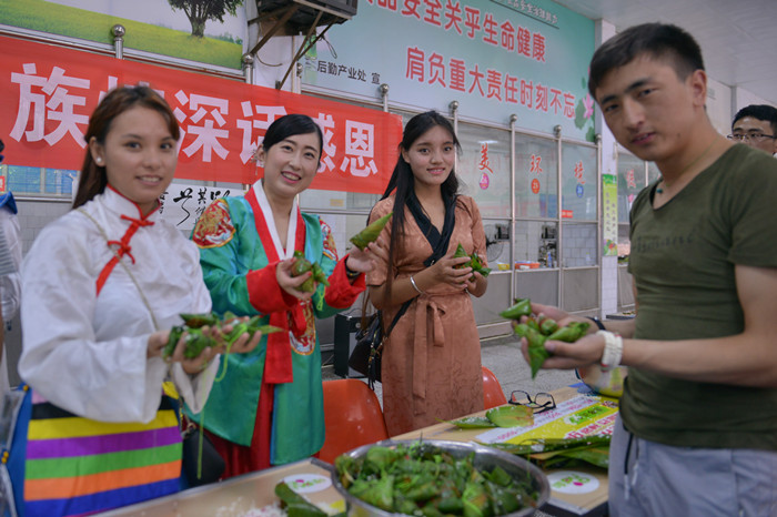 参加活动的临床医学系2013级16班藏族同学扎西尼玛,来自西藏拉萨,现场与民族同学一道学包粽子,制作香囊,编织五彩手链,佩挂艾草,喜悦之情洋溢。他表示,将进一步加强对华夏民族传统文化的深入学习,把活动感受到的家国情怀,传递的民族团结友爱,转化为爱国爱党爱家爱校的实际行动,思恩溯源,感恩践悟,要为中华民族伟大复兴而奋发有为。