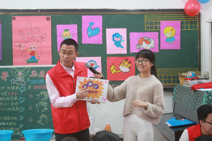 本次活动的主题是护“手”卫生,从小做起。志愿者们首先为小朋友们介绍了手部卫生的重要性,并由志愿者们扮演细菌的方式,向小朋友们介绍了不养成良好的卫生习惯会对身体造成的危害。在之后的有奖竞赛中,小朋友们表现得积极出色,参与度高,还认真地跟着志愿者们学习了洗手歌。最后,志愿者们和小朋友们来到操场上以做游戏的方式练习洗手操,整个活动在志愿者和小朋友们的欢声笑语中落下了帷幕。