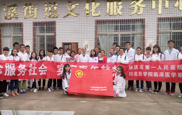 4月20日上午,临床医学系2013级年级办与南充市顺庆区第一人民医院在潆溪镇街道文化服务中心开展“高血压、血糖异常及Ⅱ型糖尿病”筛查活动。