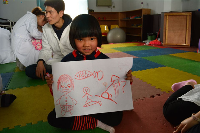 据悉,此次志愿服务活动将持续长达2个月。在此期间,“汇爱”服务队的志愿者们将进入康复室,陪同脑瘫儿童进行康复训练,提高训练质量。除了常规的志愿活动外,完成训练后,志愿者们还有针对性地开展了一系列益智游戏。一支画笔,一张白纸,在志愿者和孩子们的共同努力下变成了一幅幅妙趣横生的图画。这些有趣的游戏在带来了欢声笑语的同时,也进一步提高了患儿的反应力。