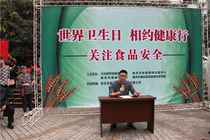 今年世界卫生日的主题是“食品安全”,4月3日,临床医学系2012级学生会在南充市疾控中心的大力支持下,在顺庆区延安路社区开展了大型食品安全宣传和义诊活动。