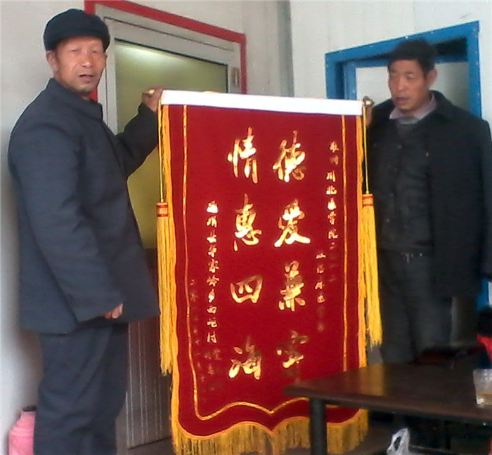 2015年3月,临床医学系2012级年级办收到了一面绣着“德爱兼寄,恩惠四海”八个鲜红大字的锦旗。这面锦旗来自甘肃华岭乡西岖村,他们对我院临床医学系2012级9班开展的“小宿舍 大爱心”主题团日活动表达了由衷的感激之情。