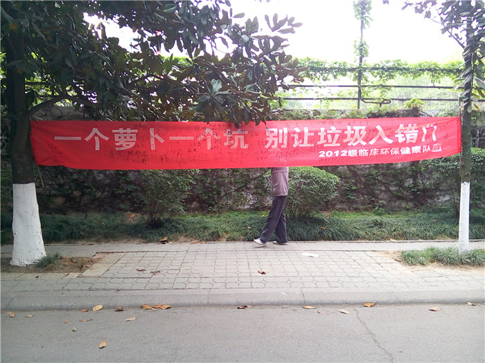 为了推动爱护环境节约资源建设美丽中国的理念深入人心,实现生活垃圾资源化,普及垃圾分类基本知识,3月27日,临床医学系2012级在顺庆校区进行了垃圾分类环保宣传活动。
