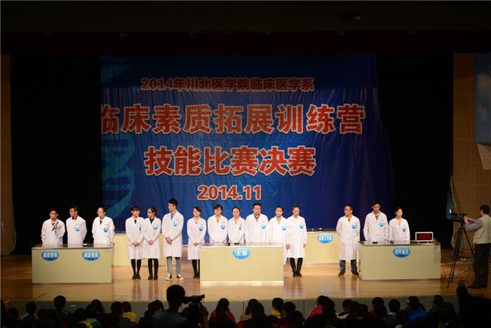 11月23日下午,临床医学系临床素质拓展训练营技能比赛决赛在顺庆校区世纪礼堂成功举行。学院党委书记李成军、党委副书记杜勇、学校督导委员会专家何忠阶到场指导,临床医学系相关负责人及700余名学生观看了本次比赛。