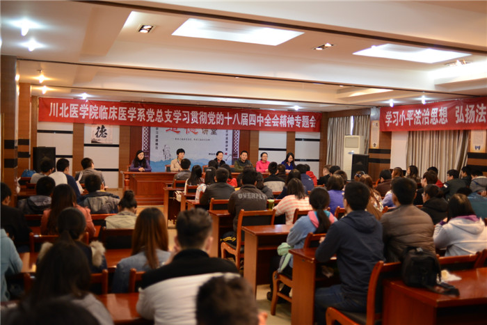 结合现场的参观学习,熔铸营专题安排在牌坊村村委会会议室举行学习贯彻党的十八届四中全会精神学习会。与会人员围绕邓小平理论中蕴含的科学系统的法治思想,认真学习四中全会一系列文件和报告,深刻领会党中央全面推进依法治国的决策部署,深刻理解全面推进依法治国的重要意义、指导思想、总目标和基本原则。会议要求所属党支部紧密结合中国梦和中国特色社会主义宣传教育,深入宣传阐释公正、法治等社会主义核心价值观的内涵要求,引导临床学子努力成为社会主义法治的忠实崇尚者、自觉遵守者和坚定捍卫者。