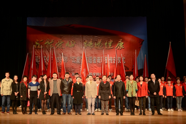为培养临床学子在走进医院、社区、院落,深入基层、贴近群众、服务社会的生动实践中践行社会主义核心价值观,11月2日下午3:00,川北医学院临床医学系2014年“汇爱”志愿者表彰暨传递仪式在顺庆校区世纪礼堂顺利举行。我校校党委书记李成军,组织部部长胡春梅及相关部门负责人,川北医学院附属医院、南充市中心人民医院、南充市第三人民医院和南充市妇孺医院的嘉宾莅临现场,临床医学系600余名志愿者参加了此次大会。