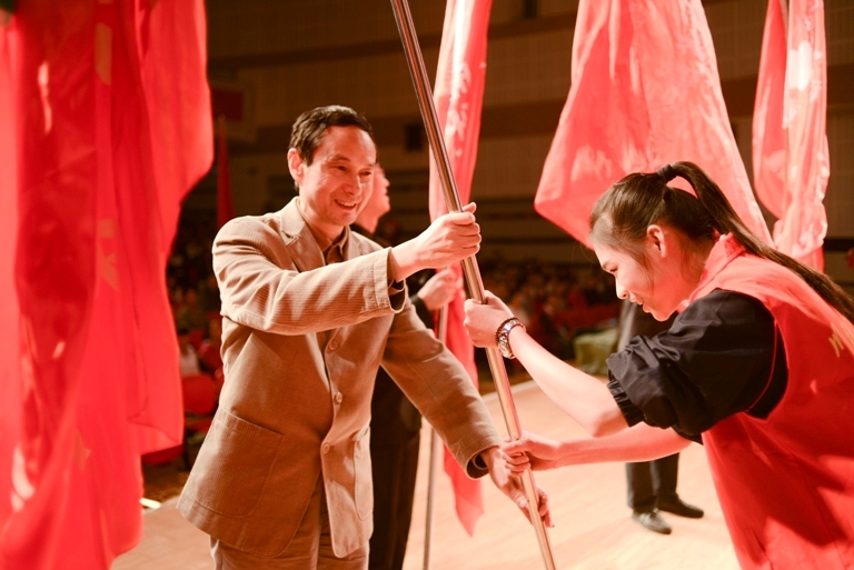 手语表演《感恩的心》将大会带入尾声。党委书记李成军对活动深情寄语。他对2011级优秀志愿者表示诚挚的祝贺,对一直以来给予“汇爱”志愿服务活动大力支持的南充市各医院表示衷心的感谢,要求志愿者们紧紧抓住大学生社会主义核心价值体系建设这一根本,以培养医学生职业精神为主要内容,不断丰富“汇爱”活动内涵,磨砺敬业品性,增强诚信理念,弘扬友善精神。希望新一届志愿者珍惜荣誉,发扬“奉献、友爱、互助、进步”的志愿服务精神,为营造团结互助、平等友爱、共同前进的社会氛围和人际关系作出贡献。