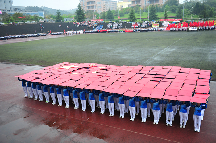 临床医学系学生方队由200名学生干部、学生党员组成,方队以斗志昂扬的神情,慷慨激昂的鼓声,火箭形的方阵伴着《运动员进行曲》踏向主席台。“临床医学,明德济世,青春飞扬,献身临床”是他们的口号,每一个字都充满着对未来的憧憬,每一个声音都充满着医生救死扶伤的高尚品德。伴随鼓声的节奏,方队依次变换出“2014”、“十二”和五星红旗的文图,偌大的“2014”代表总结过往,大胆开拓,不断创新,力争在2014年取得更加丰盛的收获;“十二”预示在第十二届运动会上,临床医学系健儿们能赛出风格,赛出自我,再创辉煌;图形定格为五星红旗,鲜艳的五星红旗表达着他们对祖国、对母校最诚挚的爱,和他们为祖国献身医学的决心。整齐的步伐踏着他们的坚定,灿烂的微笑散发着他们的热情,嘹亮的口号彰显着他们的实力。