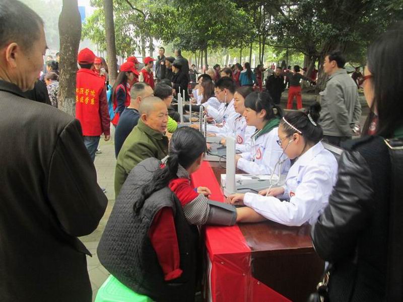 在南充市妇孺医院,党员志愿者通过制作主题海报,以医院为活动中心,分小组调查走访附近街道,分发相关资料,进行孕产知识宣传。同时,在院内设置孕产妇咨询点,耐心为孕妇讲解从早孕到产前各个时期的相关知识及注意事项,并为就医咨询者测量血压,普及健康知识。
