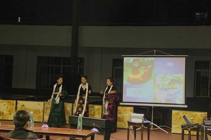 临床医学系2012级临床专科共有藏、彝、羌、回、蒙古等民族的学生共46名。活动结合学生民族特点,进行了民族知识宣传,开展了民族知识抢答,以富有特色的民族歌舞形式宣传民族文化。活动内容丰富,形式多样,吸引了一批多才多艺的民族学生在台上一展风采,现场气氛十分热烈、和谐、温馨。活动持续了近两个小时,209名专科学生悉数到场全程参与,极大地调动了大家的积极性。最后在优美的乐曲声中,师生们一起载歌载舞,跳起了《达体》、《锅庄》等民族舞蹈,欢快的气氛把活动推向了热烈的顶点,各民族友谊在手拉手中得到无限传递。
