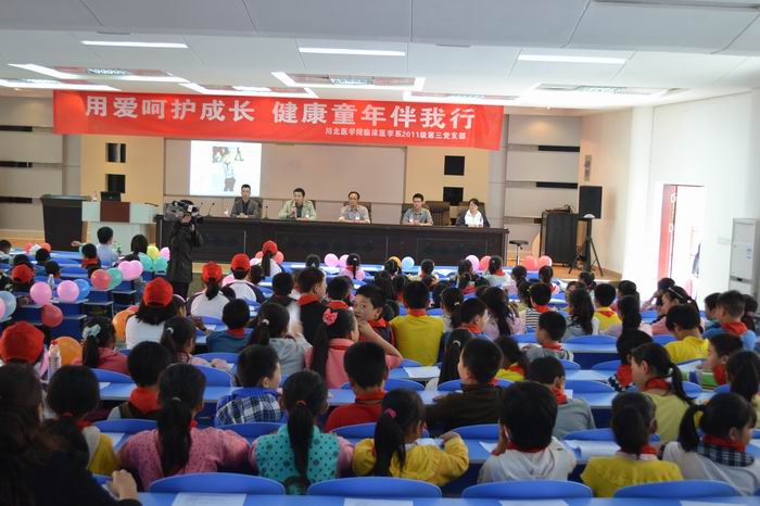 为进一步教育和引导广大学生党员牢固树立宗旨意识和群众观念,加强党性修养,坚定理想信念,增强学生党员队伍的生机活力,2013年10月24日,临床医学系党总支2011级第三党支部赴南充市高坪区第五小学开展了“关爱‘金色花’,传递正能量”主题党日活动。